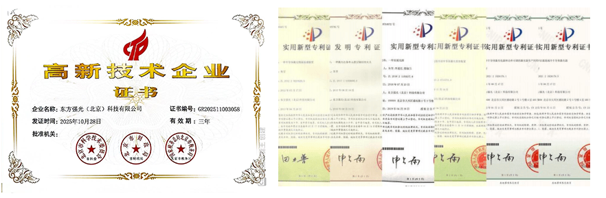 东方强光非常注重科技创新,截至2022年底,取得国家专利多项,包括实质审查阶段多项。2016年至今被评定为国家高新技术企业,多次在行业内获得相关专业奖项。拥有独到的半导体弧形、环形激光器工艺技术,灵活的定制化柔性产线,可为客户提供灵活的解决方案。
